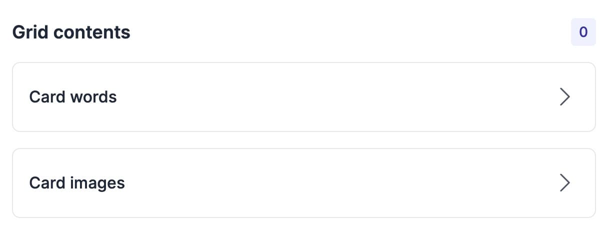 Once you've chosen your card type and grid size, the grid contents area will display words, images, both, or nothing. This depends on whether you selected a text, image, combo, or traditional card type, respectively.